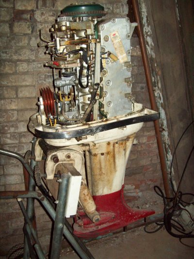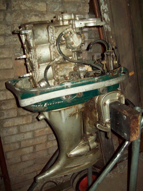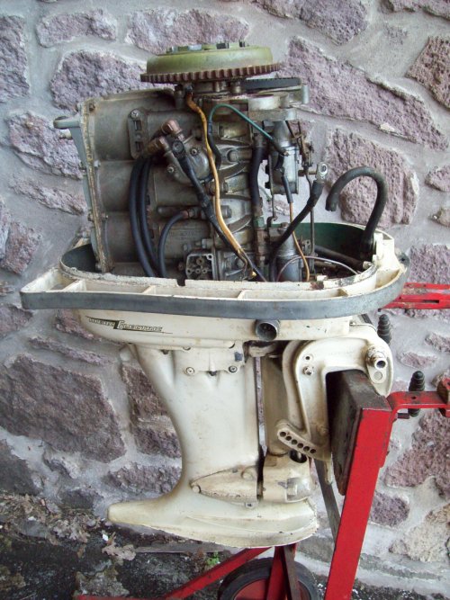 Years:1957; Mark 55E 40hp Ser. #1030648 powerhead. Seems mechanically OK. Has carbs, flywheel, and alternator winding. No starter or magneto. |