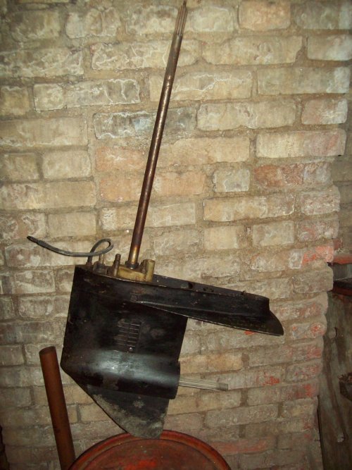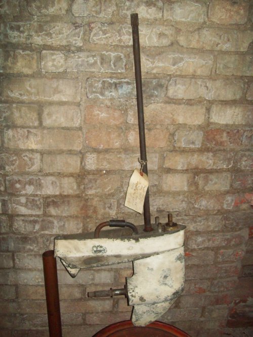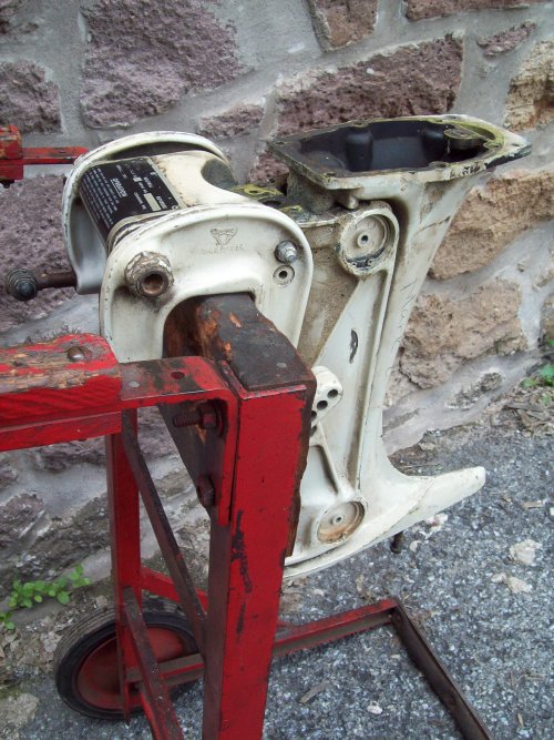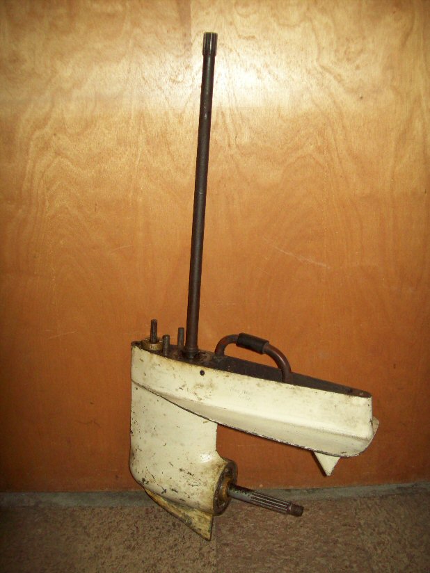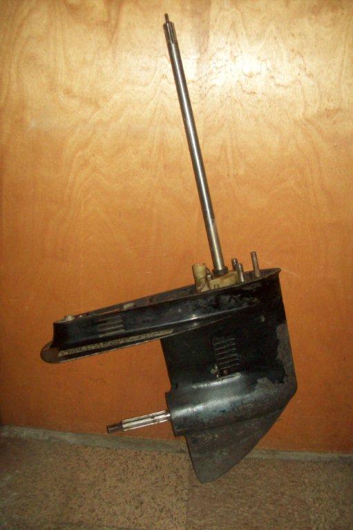 Years:1956-58; Mark 30 30hp lower gear housing assembly. Seems like a nice, clean unit. There is some material broken off the bottom of the skeg and the rear surface ahead of the prop has been rubbed into by a prop? but this does not seem to be a problem. |
