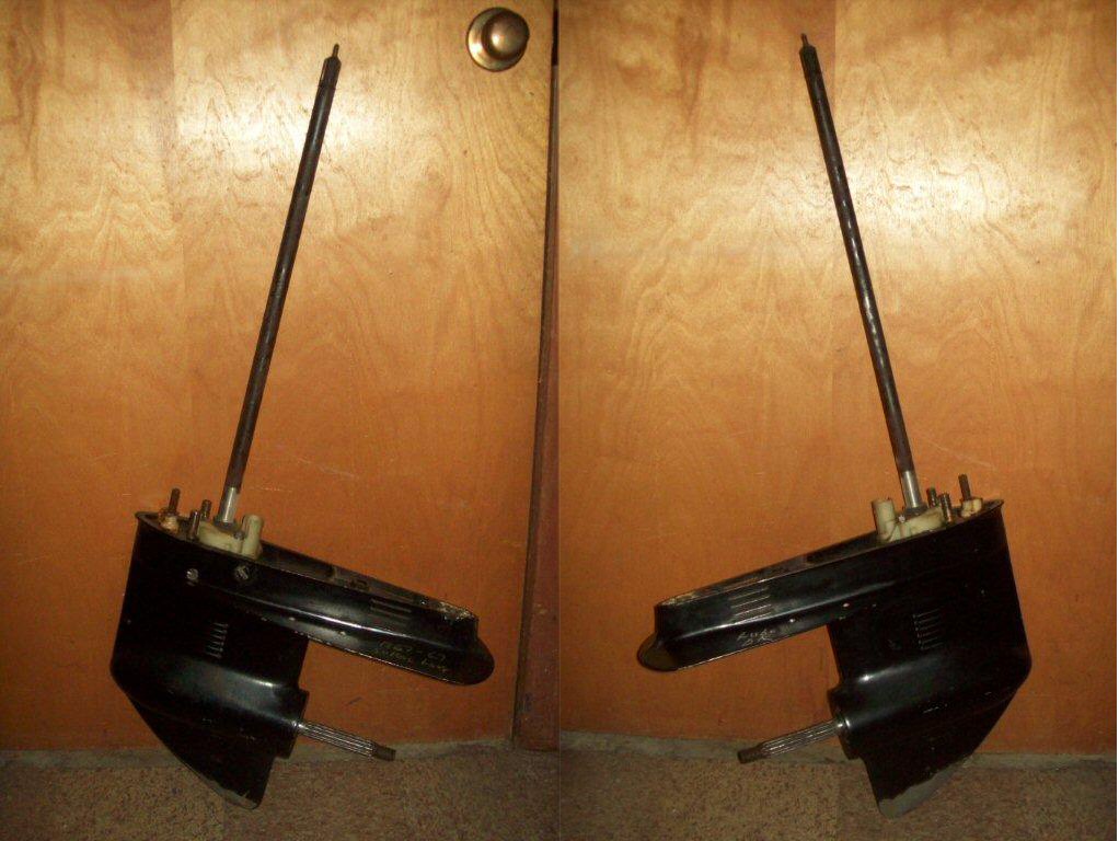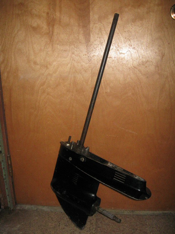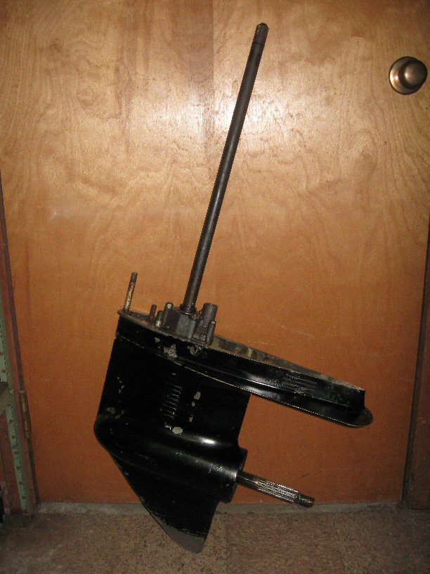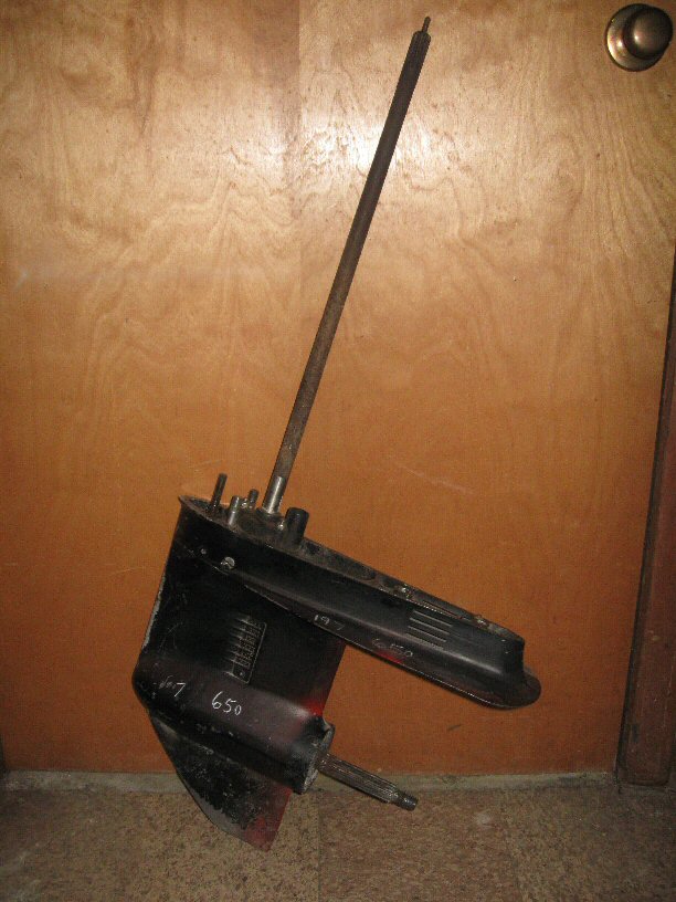 Years:1967-69; 50hp long shaft gear housing assembly. This is a beauty. It has the scarce update drive shaft with the stainless steel section. It is clean and seems to be in fine mechanical condition. |